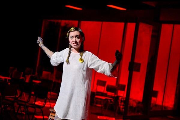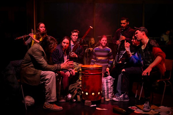 If you could change the world right now, what would you do? Change the world! by Mart van Berckel and Pedro Beriso, showing at Semper Zwei, provides a great opportunity to reflect on this and a whole host of other questions. The production aims to transport the audience to the day after a revolution: in a room full of empty chairs (the remnants of barricades), four singers meet after devastating events to reflect, to mourn and to hope … and also to think of a way forward. But they are not alone. They are joined by spoken-word artist Amara van der Elst as a figure who is simultaneously both inside and outside events. According to Mart van Berckel: “Like a presenter or a storyteller, she is responsible for what happens on stage; she can press ‘play’ or ‘pause’, rewind or fast-forward. She’s the motor driving the performance.” She addresses the audience directly with challenging texts, constantly throwing up questions that demand an answer. Amara van der Elst partly drew these questions from the lyrics of the songs which, like a collage, were compiled for this production. The music from both the 19th and 20th centuries runs from Ludwig van Beethoven to Hanns Eisler. Alongside a heady sense of revolutionary tension, the production creates space for personal reflection. Change the world! That’s not a challenge but rather an invitation to tackle difficult questions.