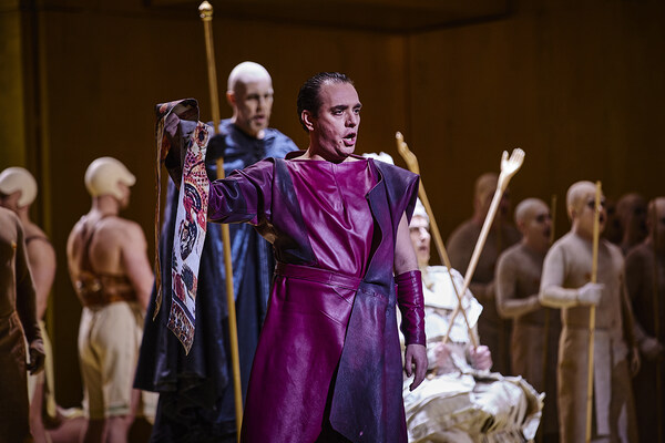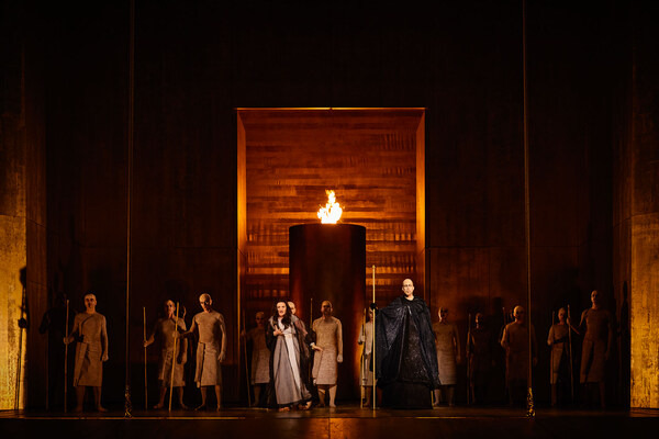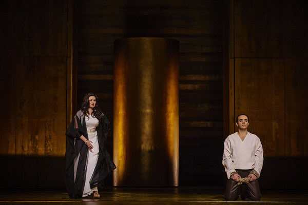 The high priest Ramfis, a close confidante of the Egyptian royal family, reports to the young officer Radamès that a new war against the Ethiopians is imminent and that the name of the commander will soon be announced. Radamès hopes to go to war as the Egyptian general. He dreams of victory and glory and of his secret love for the daughter of the Ethiopian king, Aida, who lives as a slave at the royal court. Amneris, the daughter of the Egyptian king, loves Radamès and hopes to win his affections. When she meets him in a euphoric mood and Aida appears, she suspects the love between Aida and Radamès.