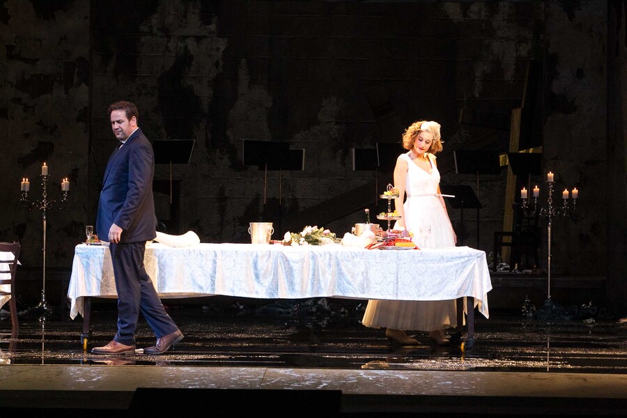 According to his servant Leporello, Don Giovanni has already loved no fewer than 2,064 women; the number of those he has left with broken hearts cannot be any less. This masterpiece about the charming yet unscrupulous lothario Don Giovanni became (in the words of Richard Wagner) the „opera of all operas“, thanks to the inspired collaboration of Wolfgang Amadeus Mozart and his librettist Lorenzo Da Ponte. The work, which premiered in Prague in 1787, is more than just a tale of love and seduction, lust and immorality, rape, murder and revenge. Expressly called a „funny drama“ by Mozart, the narrative alternates between tragedy and comedy, between tales of sex-and-crime and theatrum mundi. Don Giovanni, with his passion for breaking rules and taboos, does not shy away from challenging the Dead and even Fate itself. In his staging for Dresden, Andreas Kriegenburg highlights the contemporary relevance of the characters’ endless greed for life, love and beauty.