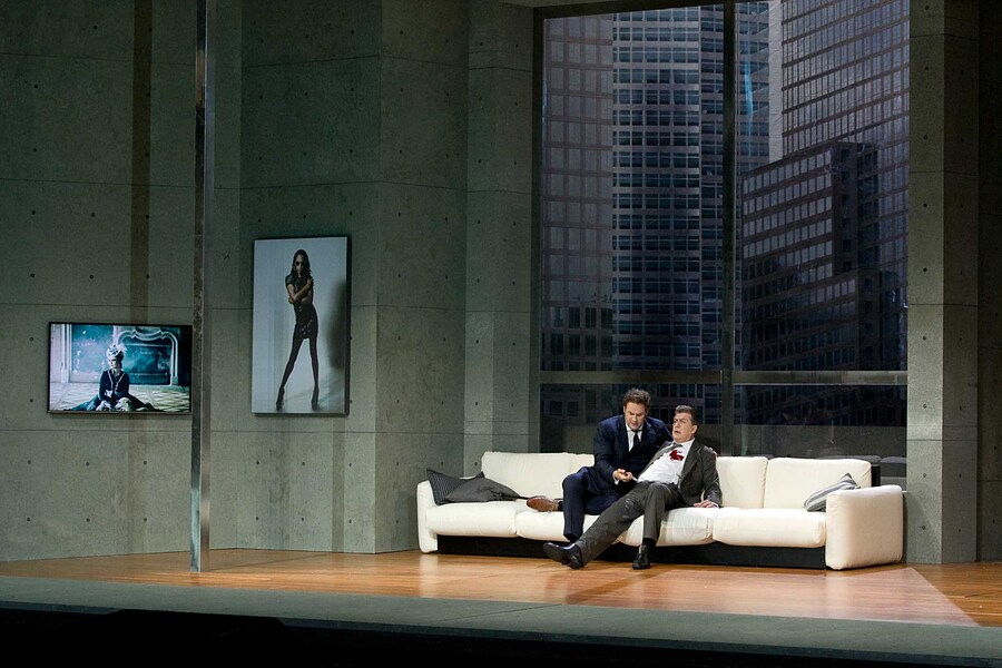 Leporello threatens to leave Giovanni, but the latter appeases him and lets him in on his next plan: he wants to swap clothes and seduce Donna Elvira’s maid while Leporello diverts Donna Elvira by posing as a rueful Don Giovanni. The ruse appears to work: Donna Elvira is responding to the supposed Giovanni’s vows to be faithful, while the real Giovanni serenades his latest love interest. This is interrupted by Masetto, who wants to find and kill Don Giovanni. Giovanni, pretending to be Leporello, offers his help at first, but then brutally strikes down Masetto. Zerlina finds Masetto and consoles him with a very special ‘medicine’. In his attempt to escape from Donna Elvira, Leporello runs into Donna Anna, Don Ottavio, Zerlina and Masetto, who mistake him for Giovanni and want to slay him. He unmasks himself and gets away. Don Ottavio, who had doubted Giovanni’s guilt so far, now announces his intention to report him to the authorities. Leporello has meanwhile fallen into Zerlina’s hands, who threatens him with great relish. Donna Elvira, the only one to have asked for Giovanni’s life to be spared, vents her conflicting emotions: even though he has hurt her so much, she still worries about him. Giovanni is meanwhile enjoying the night and relating another escapade to a much worse-for-wear Leporello. A sudden otherworldly voice interrupts them: the statue of the murdered commander warns Giovanni that his laughter will not last. Amused, Giovanni invites the statue for dinner. To alleviate her suffering, Don Ottavio proposes to Donna Anna, but she puts him off because of her mourning. Don Ottavio proclaims to stand by her nonetheless. The banquet is prepared at Giovanni’s when Donna Elvira implores him to change his ways for the very last time. Yet Don Giovanni will have none of it. Then the statue of the commander appears and asks Giovanni to repent. He refuses and is carried down to hell.