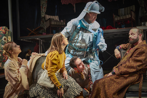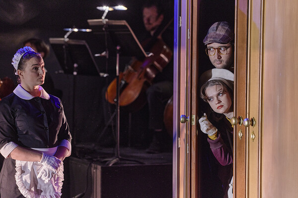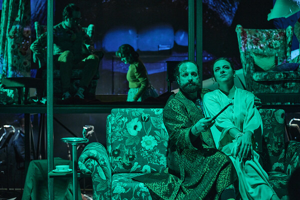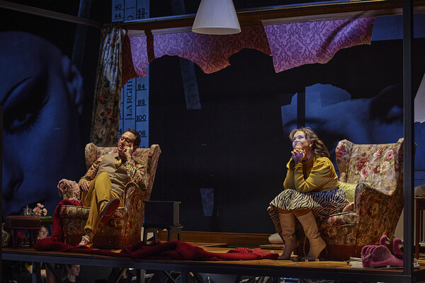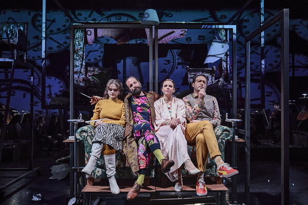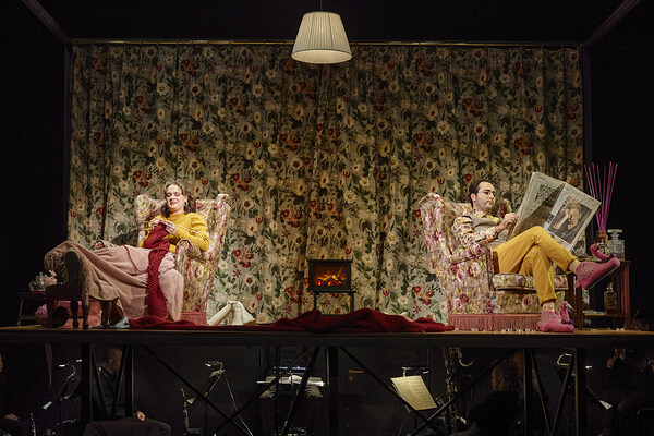 A married couple are sitting cosily in front of the fireplace. We learn that they live near London and are called Smith. Later, they are joined by the Martins, who are surprised to discover that they are husband and wife. The fire chief and the maid Mary also already know each other, and the bald prima donna – she always styles her hair the same way! Eugène Ionesco’s first play The Bald Soprano from 1950 inaugurated the ‘Theatre of the Absurd’. With its assemblage of domestic scenes featuring meaningless banter, situational comedy, pseudo-clichés and non-sequiturs, Ionesco created a witty “anti-play” full of dazzling linguistic acrobatics. In collaboration with the playwright, Italian composer Luciano Chailly (1920-2002) wrote the libretto for the opera of the same name. His score captures the character of the protagonists and their relationships by means of a quintet of plucked instruments – featherlight, vain and dance-like – as well as serene string quintet and a rather coarse wind quintet. Semper Zwei now presents the German premiere of this opera rarity, which was first performed in Vienna in 1986.