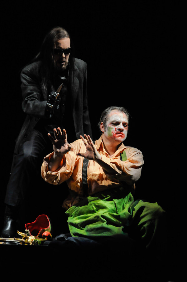 At the beginning of the opera, the Jester of Mantua mocks a grieving father, only to end up weeping for his own dead daughter.