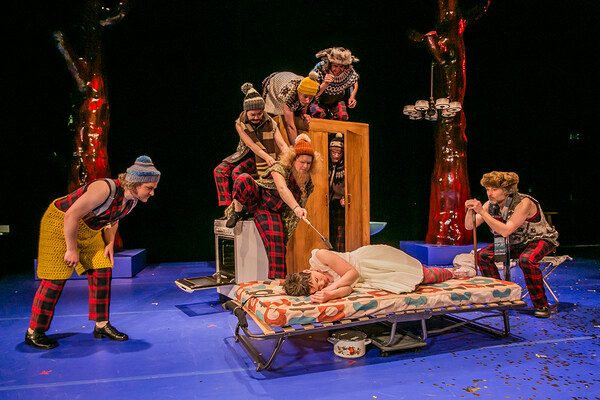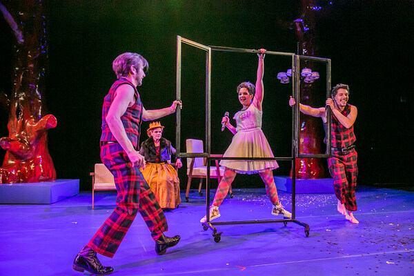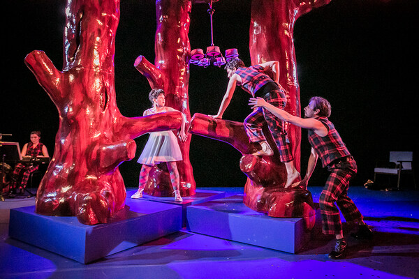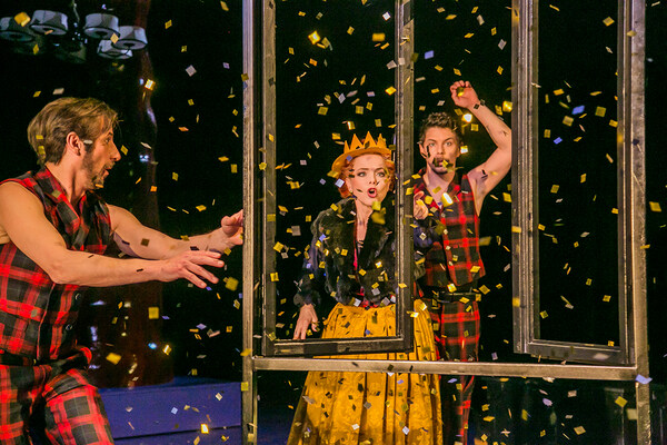 Schneewitte loves her father, the King, and her beautiful stepmother. Everything is perfect – until one day the girl is all grown up, and a thousand times more beautiful than the Queen. A self-confident teenager, Schneewitte claims the throne. Trouble is brewing: the King is annoyed, and the stepmother wants Schneewitte dead. But suddenly she has seven quick-witted dwarves at her side. »Schneewitte«, which premiered in 2008, is a funny and clever adaptation of the story of Snow White by Sophie Kassies and composer Jens Joneleit. This scintillating piece of musical theatre employs contemporary music as well as jazz and pop to playfully retell the well-known fairy tale. Using only a few props, director Andrea Kramer imaginatively transforms the stage of Semper Zwei into a royal palace with a telephone, a dark forest underlaid with an orchestral soundscape, or simply into the house of the seven dwarves, who by the way also play the instruments of the orchestra.