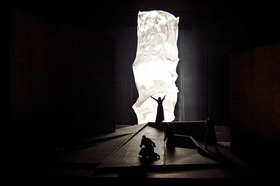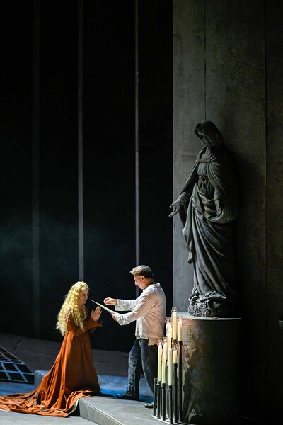 The celebrated singer Tosca lives only for art, until political intrigue suddenly disturbs her life and that of her lover, the painter Cavaradossi: When Cavaradossi hides the political refugee Angelotti, he is targeted by the unscrupulous police chief Scarpia, who has long had his eye on Tosca. To save Cavaradossi, Tosca not only has to betray Angelotti, but also give herself to Scarpia. Premiered in 1900, Puccini’s »Tosca« is practically unique in its close interweaving of political power and personal passions. The German premiere of this opera about love, jealousy, betrayal and tyranny was held in Dresden in 1902. In 2009, director Johannes Schaaf found a timeless narrative style for the play.