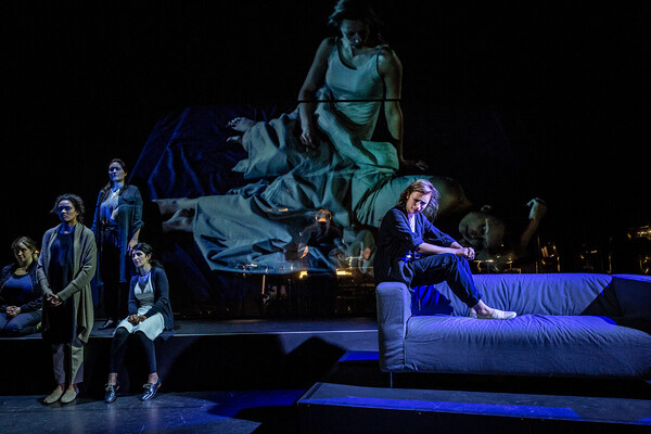 Um 4 Uhr 48, wenn die Klarheit vorbeischaut für eine Stunde und zwölf Minuten, bin ich ganz bei Vernunft. Philip Venables’ preisgekrönte Kammeroper aus dem Jahr 2016 nach dem gleichnamigen Schauspiel der englischen Dramatikerin Sarah Kane (1971 – 1999) führt in 24 situativen Tableaus tief in die Psyche eines von emotionalen Zuständen, Ängsten und Krankheit geprägten Menschen. Dessen ständiger Kampf um Normalität, Liebe, Leben und Akzeptanz rührt tief an, lässt die Grenze zwischen Krankheit und Gesundheit verwischen und stellt immer wieder die Frage: Wie funktioniert ein Leben im Einklang mit sich selbst? In der musikalischen Perspektive von sechs Sängerinnen und zwölf Orchestermusikern weitet sich der Zustand des Unsagbaren in hochpoetischen und zugleich schonungslosen Texten zum fassbaren Raum. Die deutschsprachige Erstaufführung von Tobias Heyder versetzt Darsteller, Musiker und Publikum gleichermaßen in einen an Ausstattung und Aktion auf das Wesentliche reduzierten Seelenraum.