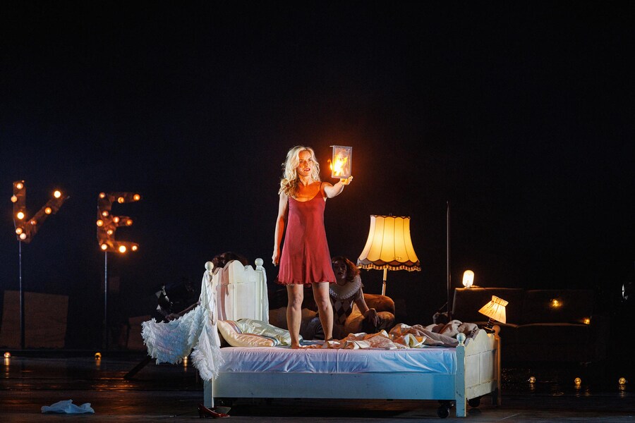 Die tote Stadt ließ Erich Wolfgang Korngold neben Richard Strauss zum meistgespielten Opernkomponisten Deutschlands der 1920er Jahre werden. Mit Klaus Florian Vogt und Vida Miknevičiūtė in den Hauptrollen erzählt Regisseur David Bösch eindrucksstark die Geschichte von einer Reise ins Ich, bei der Traum und Wirklichkeit verschwimmen. Korngolds Musik bringt das psychologische Drama zu voller Entfaltung, sein Kompositionsstil ist unverkennbar erzählerisch und emotional.